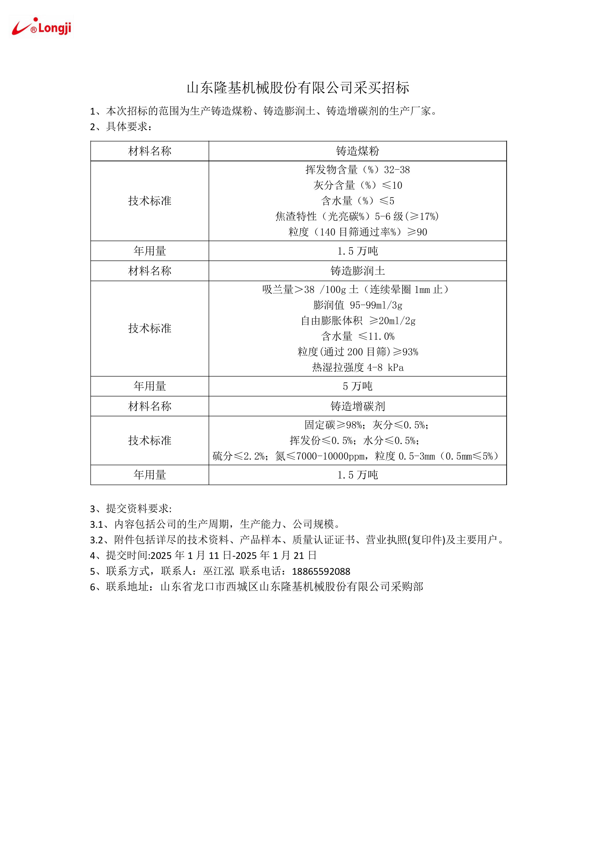 山東隆基機(jī)械股份有限公司采買招標(biāo)